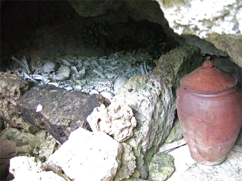 遺骨収集で数多くの風葬場所を見てきましたが、割れていない瓶が安置してあるのはこの場所だけでした。ここ具志頭も相当な砲撃を受けたにもかかわらずです。その点が実に不思議でなりませんね。