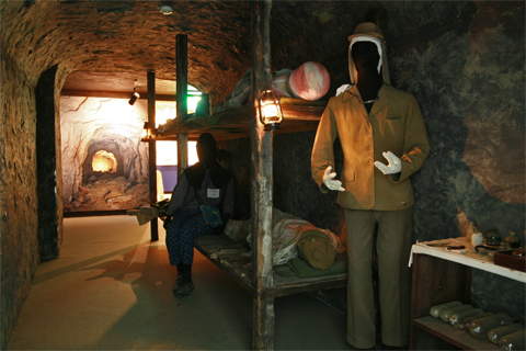 南風原陸軍病院壕の内部の様子を再現したものです。傷ついた日本兵が病院壕で傷病を回復し、あるいは多くの兵員が亡くなっていきました…。