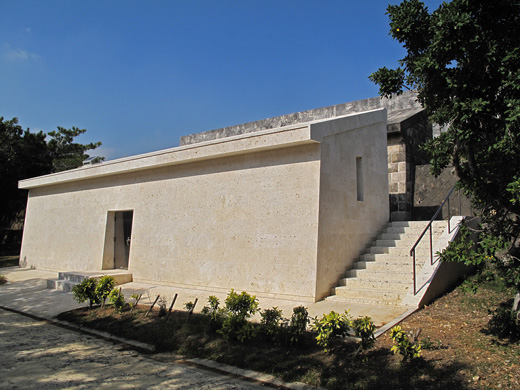 祭壇および納骨堂の様子です。納骨堂は、琉球トラバーチン石約一千個を用いて、琉球古来の石積み法で積んであります。