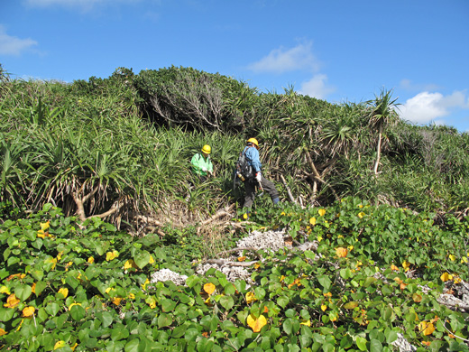 おっと、私たちは見学に来たのではなく調査に来たのですから、さあ国吉さんたちに負けずに、アダンのジャングルにアタックしましょう。
