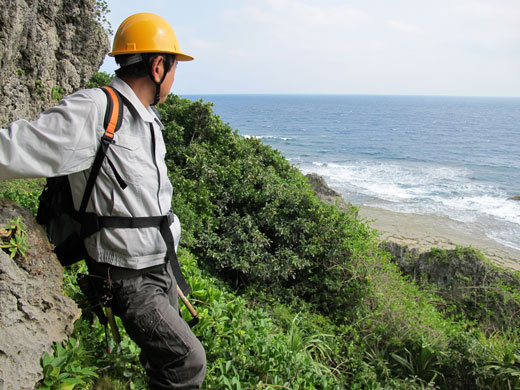 凄い崖ですね。摩文仁東端にある慶座絶壁(キーザバンタ)よりも凄い絶壁ですよ。現段階ではこのような絶壁が大渡までずっと連なっている印象です。