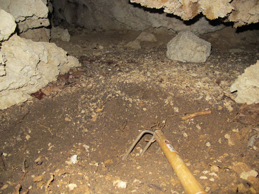 ご覧のように、狭い壕ながら数人なら問題なく入れる規模です。ご覧のように30センチぐらい掘ると、沖縄戦当時の地盤と思える硬い岩盤が露出してきましたので、私たちはその深さで奥の方までくまなく掘り進んでみました。残念ながら御遺骨は発見されませんでしたが、ここには無いという事が判明したことだけでも嬉しい結果でした。