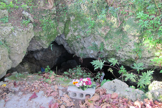 松永さんによると、このような鍾乳石のある場所は、思いの外ご遺骨が埋め込まれているケースが多いのだそうです。にわかには信じられませんが、戦後67年経過していますから、何ミリかの相応の鍾乳石がご遺骨を被覆してしまうのだそうです。