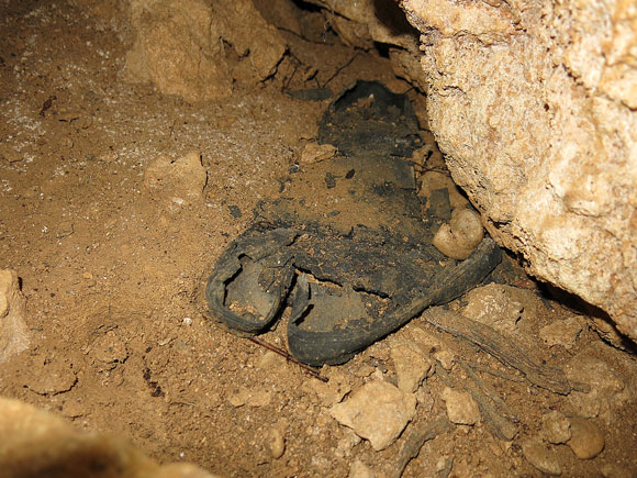 ここも人間が入れそうにありませんが、カメラを近づけて撮影しました。かなり形状が残る軍靴が二つ見えますね。もしかしたら軍靴の下にご遺骨も…。