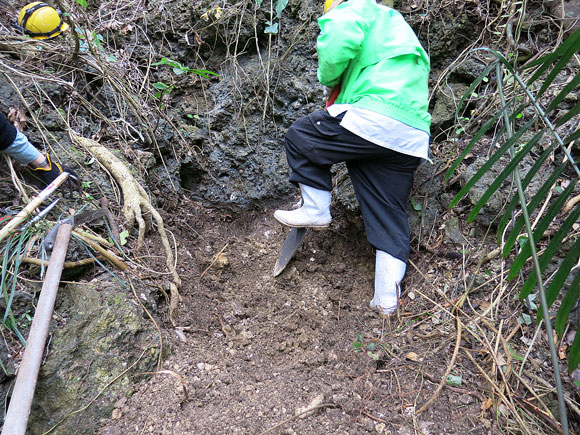 二カ所試掘してみようという話になり、この部分がそのうちの一カ所です。試掘を予定している場所は1月に訪れた際に見つけ、いつの日か掘ってみようという話になっていました。