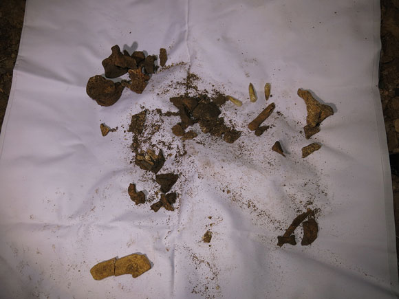 小林さんが5班の収骨現場から少し離れた場所で、お一人でコツコツと収骨していました。取りこぼしだと思われますが、ご覧に様に小さな骨片が出てきているようです。