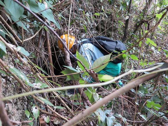 穴をのぞき込む金城さんです。この後金城さんは中に入っていきました。