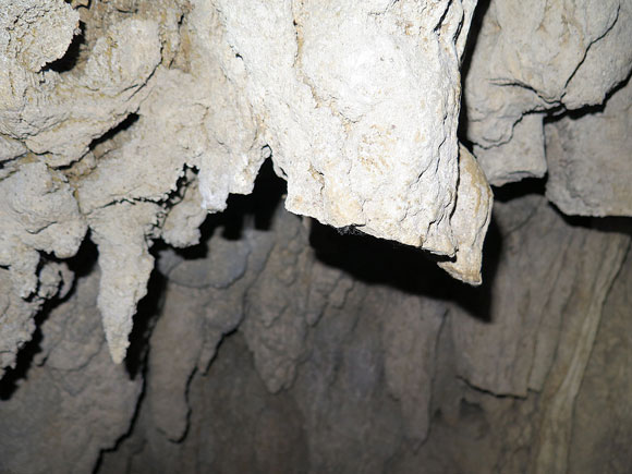 ご覧のように鍾乳石のツララ部分が折られています。おそらくこれは戦後の遺骨収集の時に折られたのではなく、沖縄戦の時に中に居る人が怪我をしないようにという事で折られたのだと思います。