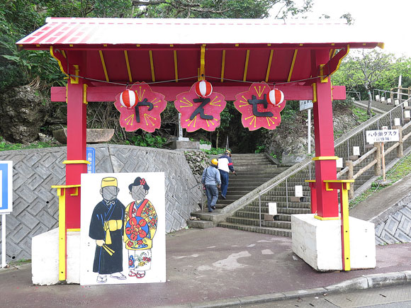 この階段を降りると「糸洲の壕」(ウッカーガマ)があります。それでは一緒に入って見ましょう。
