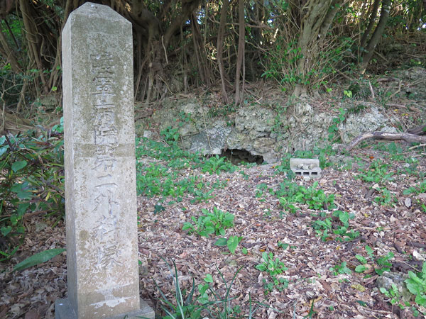 「陸軍病院第二外科壕跡」という石碑があります。奥の方に見える穴がその壕です。本日のこの「陸軍病院第二外科壕」の慰霊巡拝により、沖縄陸軍病院に関わる本部・第一外科・第二外科・第三外科の壕四カ所を巡拝した事になりますね。