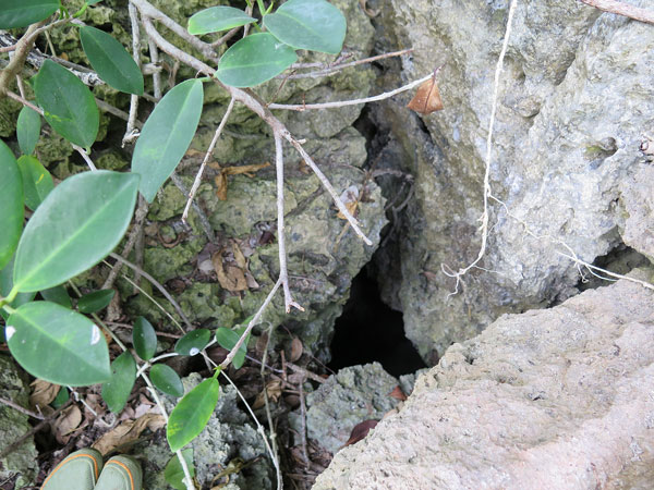 ここが壕口ですね。狭いですよ。人一人がやっと通れるような狭さです。
