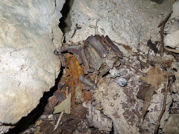 納骨堂の蓋も開けられていますね。正に墓泥棒にやられたという雰囲気ですが、ここ4年間こうした状況に変化がなく、納骨堂の蓋も開けられたままです。いずれにしてもここから先はどのようになっているのでしょうか。病院壕ですから、かなり奥まであるのではと推測していますが、一人では行けないので、ここから先の様子は見た事はないです。