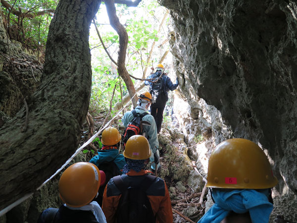 枯れ木に掴まることによる転倒を防ぐには、木の幹(沖縄では木の幹と思っても根だったりしますが…)にすぐに体重を預けるのではなく、一度グイグイと幹を強くゆすり、枯れ木でない事を確実に確認してから、エイッと体重を預ければ大丈夫です。