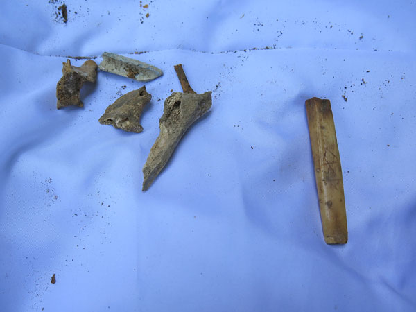 量は少ないですが、歯もありますね。遺品も出ているようです。