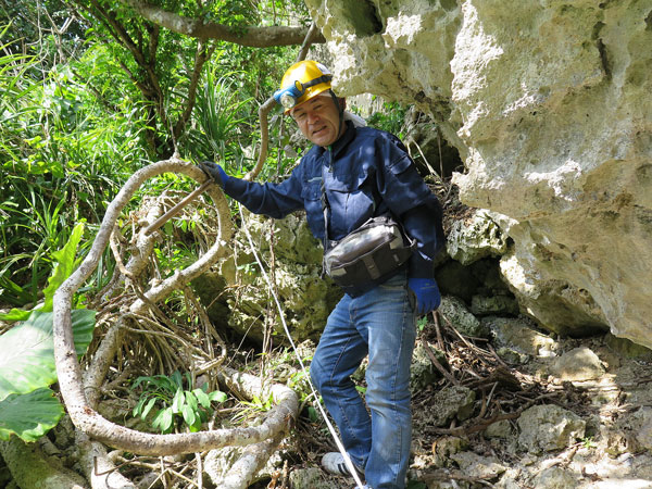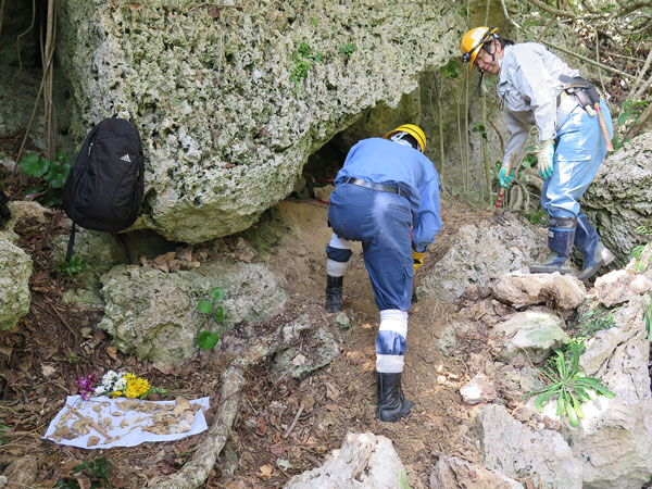 岩の下に落ちている御遺骨を見つけようとしています。御遺骨はドンドン下に落ちていきますから、念には念を押したほうが万全ですよね。