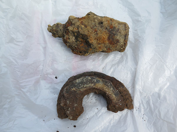 これもその隣から出ている遺留品です。御遺骨も一個だけ出ましたね。