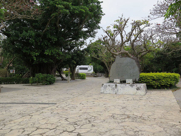 お土産屋さんの駐車場の奥にこんもり茂った森がありますが、その一角に「梯梧之塔」があります。このまま歩みを進めてみましょう。