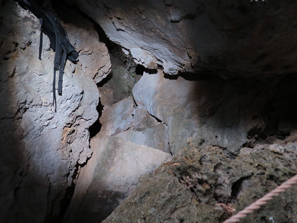 後は写真中央の部分だけです。ここは砂時計のくびれた部分と同じように、ギリギリ人間が通れるというような狭さです。
