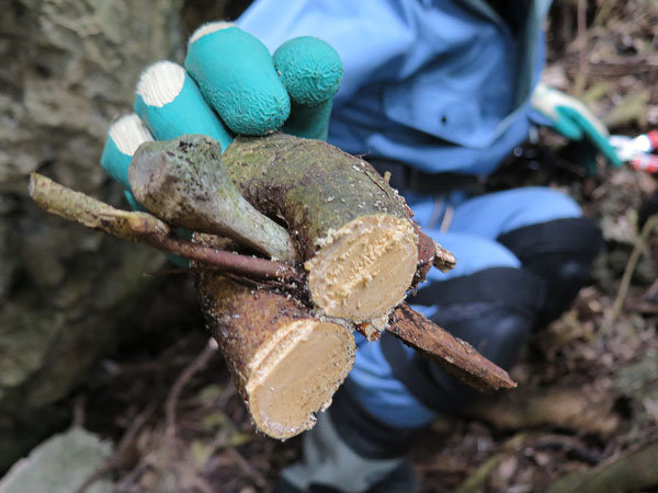 吉井さんが根に挟まった御遺骨を切り取って下さいました。