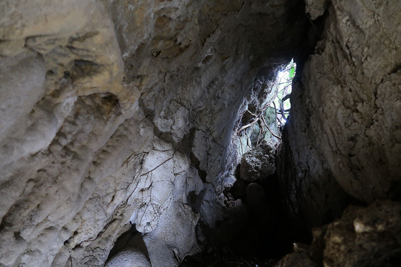 第二十四師団第一野戦病院手術壕、一度立ち入り禁止になったという事で、壕内に落石や落盤等の危険があるとかというと、そんな兆候はありません。話は飛びますが、南風原の陸軍病院壕20号壕が公開されていますが、あそこは出入り口に開閉式の扉を設け、壕内部表面の乾燥と風化による劣化を防いでいます。それでも壕内の劣化は進んでいると20号壕関係者が語っていましたが、扉が無いよりはましであり、扉がない八重瀬のこの病院壕は、壕内表面の乾燥がかなり速いスピードで進んでいると見なければなりません。それではご一緒に手術壕に入ってみましょう。