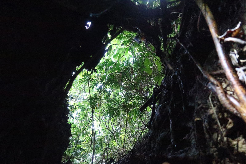 ごく僅かな隙間ですが、中を覗くとそれなりに広い空間が見えます。ある意味壕といえるのかもしれません。