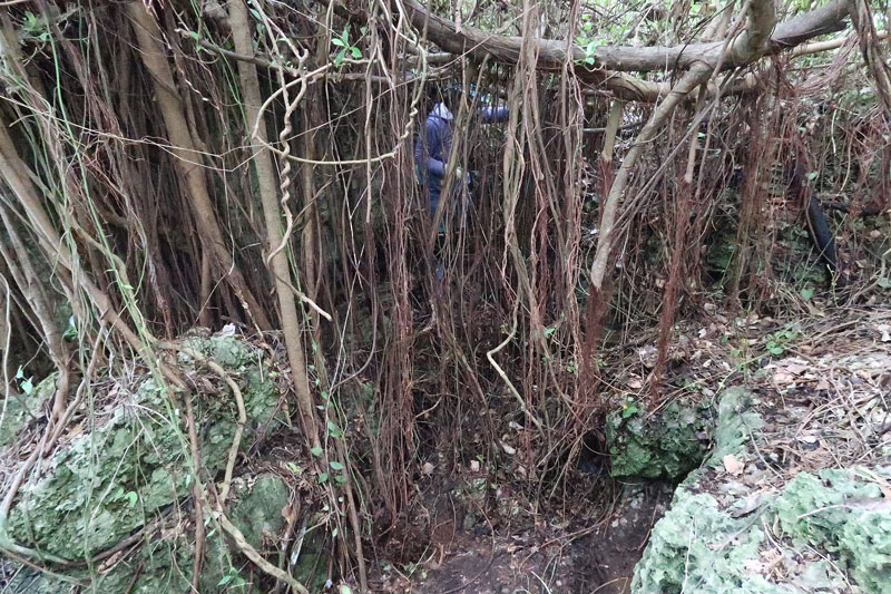 ガジュマルの気根が凄い事になっています。向こう側で作業している斉藤さんが霞んで見えます。