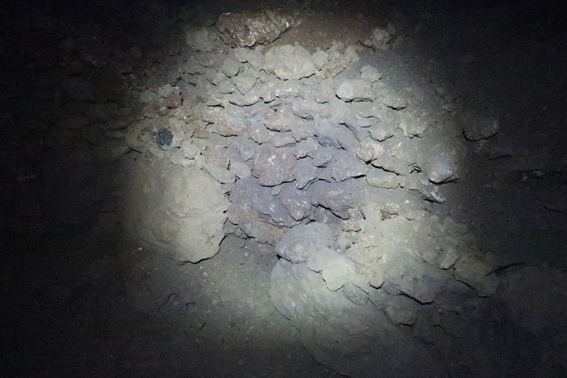 壕口が見えてきました。但し写真に写っている開口部は出入り口ではありません。横の方にあるのです。南埜さんは、この奥深い壕内で、たった一人で作業を進めているのです。心から脱帽です。立派です。m(_ _)m