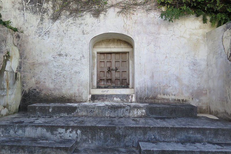 ここが「浦添ようどれ」の入り口という事になるのでしょうか。6時には門が閉まってしまうそうですよ。お気をつけ下さい。石の階段があり崖下に降りていく雰囲気です。雨の日は要注意の場所かもしれません。