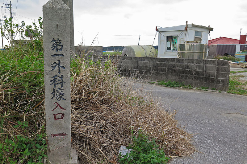 道路脇にはご覧のような「沖縄陸軍病院慰霊之塔」という石碑が立っています。結構目立つので見落としは少ないと思われます。ご覧のように案内碑のある場所は整備され整然とした場所となっていますが、二年前までは鬱蒼とした木が茂っていた場所でしたから、この碑も草に隠れてよく見えなかったという状態でした。