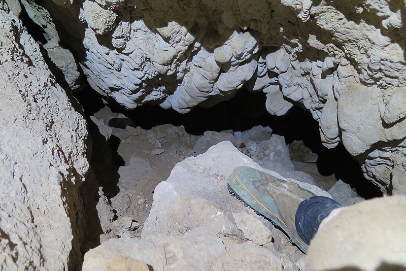 最も下に降りた壕口から開口部を撮影しました。壕口は小さいですが、空から見る地表の開口部はかなり大きいのが見てとれます。