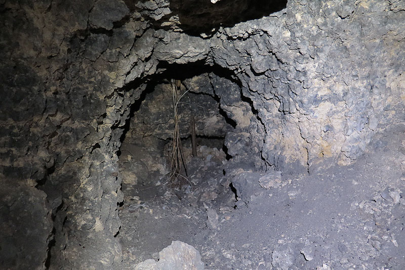 もう一つの壕と繋がっている壕口を拡大して撮影しました。結構大きめの開口部であるのが見て取れます。壁面をご覧くださいませ。昔と比べたら随分と黒色が薄くなりましたが、それでもご覧のように黒い煤が付着しており、激しい火炎放射攻撃を受けた事が想起されますよね。