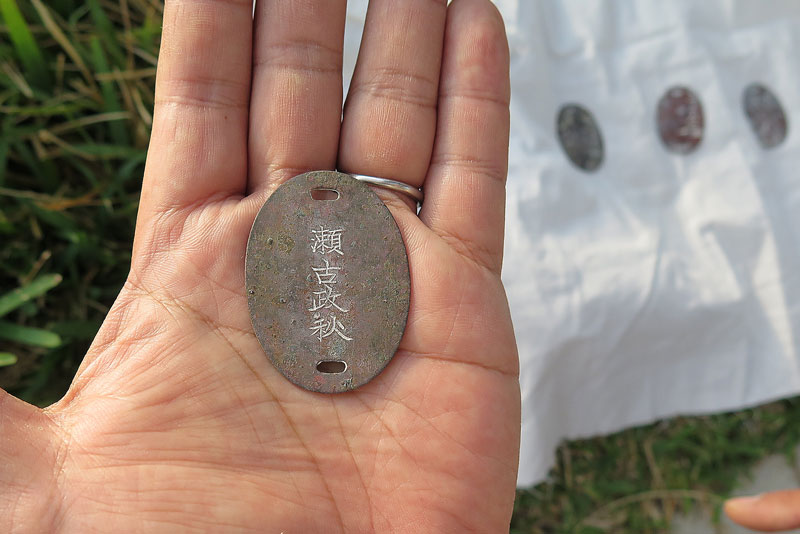 三日間続けたこの場所での調査・遺骨収集活動もこれで終わりです。当初は他の団体に先を越されてしまったという事で、何も出てこないだろうと思っていましたが、蓋を開けてみればご遺骨こそ少ししか発見出来ませんでしたが、認識票四枚を含む数多くの遺品を回収する事が出来ました。参加メンバー全員の心のこもった取り組みで、この壕内で亡くなられた戦没者の方々も、満足され感謝して下さっているに違いありません。またそうであるように、私達も心を新たにして、来年の遺骨収集活動に繋げたいですね。(^o^)