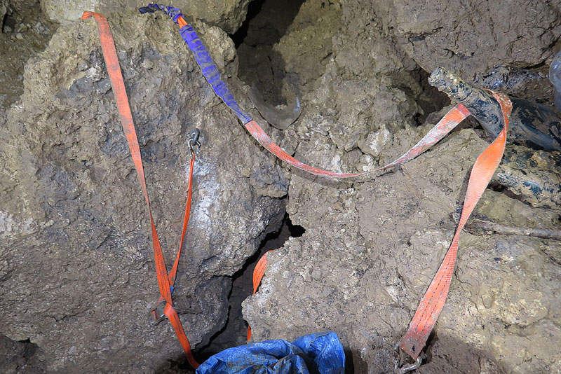 松永さんらは16日から19日まで、ごみが山積している場所周辺で遺骨収集作業を実施していた。洞窟に入り、地下5メートルほどの場所から名前が彫られた認識票や遺骨などを収集した。3年ほど前にも同じ洞窟の中から認識票が発見されている。まだ多くの遺骨や遺品が残っているとみられるが、大量の空き缶が流れ込んでいて「ごみのせいで遺骨が収集できない」状況だ。
