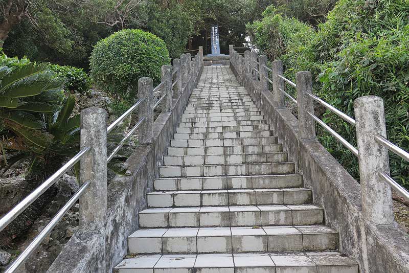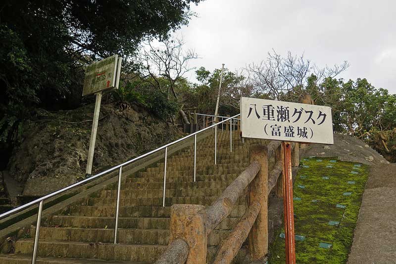 この長い階段を登っていくと八重瀬グスク跡や桜並木通り、そして多目的広場に行けます。