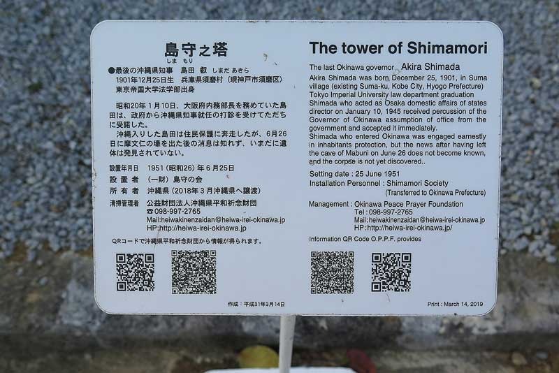 戦後、摩文仁の丘(同県糸満市)には島守の塔が建てられ、2人の終焉の地を示す碑がある。