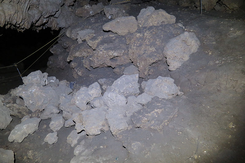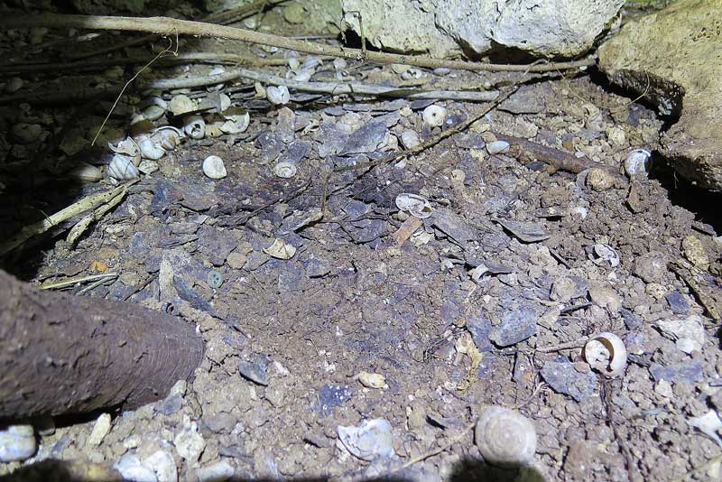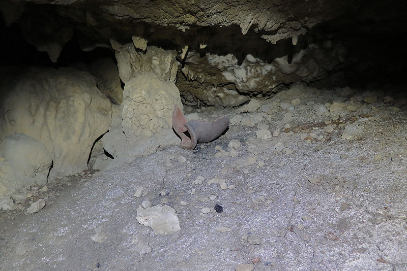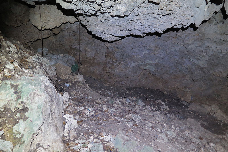 不思議なのは糞がこれ程散乱しているのに、コウモリそのものは一匹も居ませんでした。どういう事なのでしょうかね。別の視点で改めてコウモリの糞を見ると、最近落とされた新しい糞には見えませんでした。たい積してから数年経過しているような、糞には古びた雰囲気があります。これまでの長年の遺骨収集で、現在形でコウモリの糞が落とされ続けている現場も何度か見ていますから、新鮮な糞と古い糞とでは、糞の外見や雰囲気に違いがあるのは見て解ります。