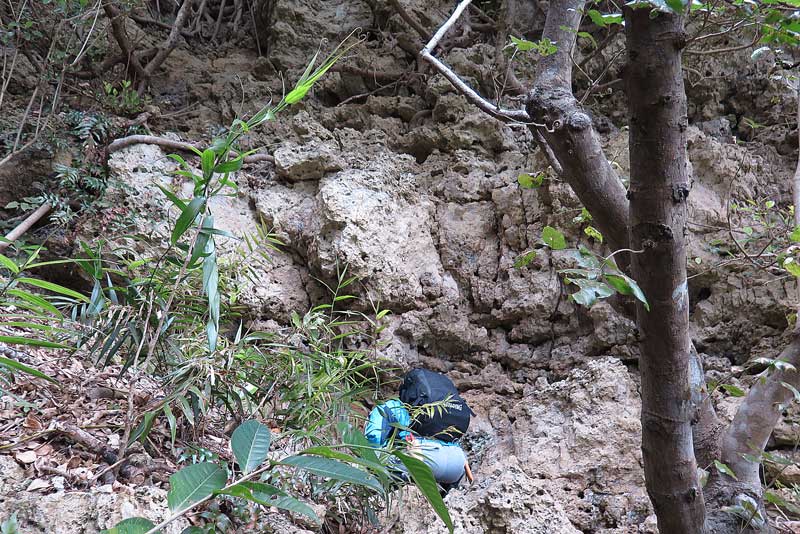 福岡さんが屈んでいる場所は平坦になっていますが、やはり平坦なところに遺品は多いですね。将兵はやはり居心地の良い平らな場所に居られたと言う事でしょう。