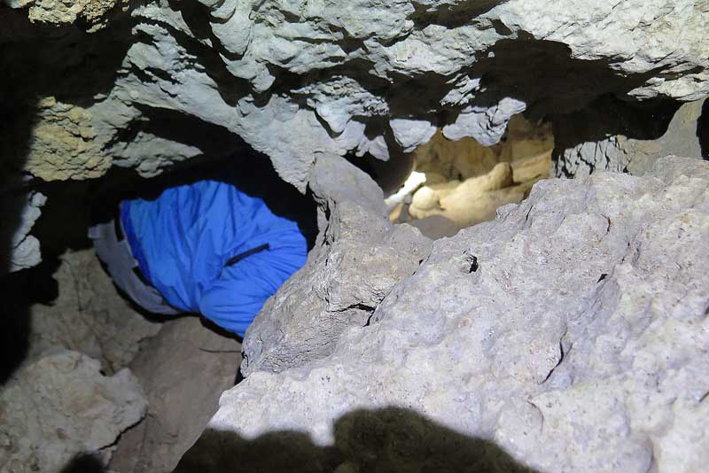 福岡さんが勇気を出して、コウモリの糞の中に入っていきました。