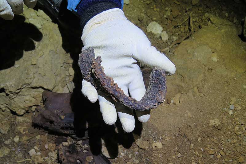 沖縄戦当時はコウモリの糞は無かったかもしれません。糞が散乱する同じ空間の中に、ご覧のような遺品がありますからね。