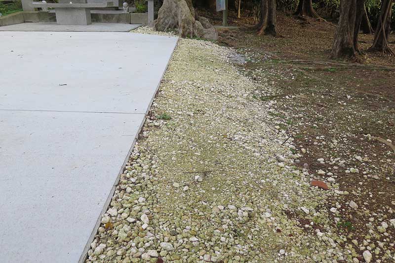 潮が満ちるとこの辺りまで海水に浸かるのでしょうかね。写真の右側は石灰岩の岩場が削られているように見えますが、繰り返し打ち付ける波の力で石灰岩が削られている状態で、海食現象と言えるでしょう。海食が更に進むと海食洞と言われる洞窟が掘られるまでになりますね。その昔、神奈川県の江ノ島でその海食洞を見た事があります。