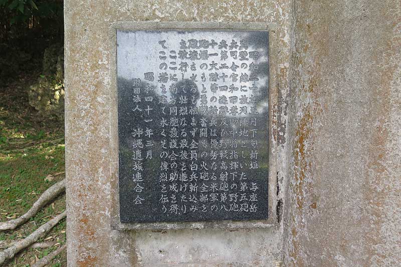 怒濤の南進を続ける米軍に対し第二十四師団隷下の各部隊は最後の拠点として真栄里地区に陣地を構築し勇戦奮闘敵の心胆を寒からしめたるもついに昭和二十年六月十七日この付近の壕内において玉砕せる