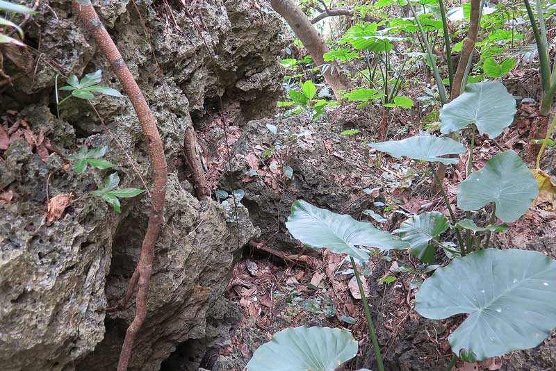 その穴を拡大してみました。壕口のような雰囲気はありますね。壕口まで行って確認したいのですが、普通の運動靴では一寸危険なので確認は出来ませんね。ご了承下さい。慰霊碑のある場所からこの場所まで、凡そ40m近く歩いたでしょうかね。それでは戻ります。