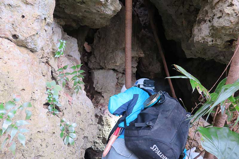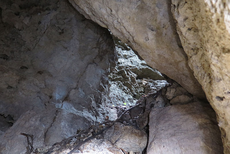 ご覧のように、人が通れるぐらいの開口部がありました。金光教の遺骨収集は、もしかしたら、ここから降りてきたのかも知れないです。ここから覗いた限りでは、行き来しやすい岩場だと感じました。