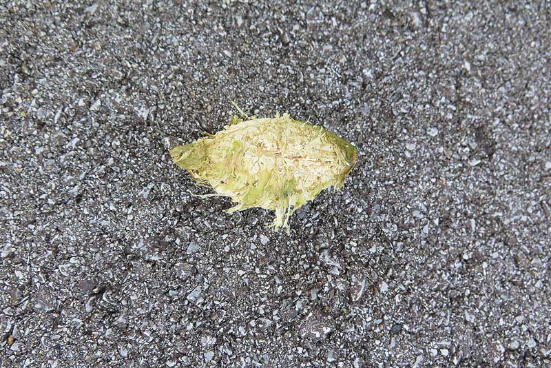 なんだろう? と思われた方も多いと思いますが、クワデーサーの実ですね。落ち葉の中にポツンと一個ありました。ヤシガニの好物だそうですよ。(^o^)