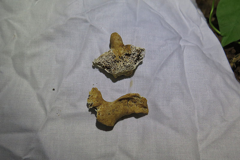 岩を移動する作業もほぼ完了したので、探索作業の開始です。皆さんが思い思いの場所に散って、クマデなどでご遺骨や遺品を探し出しました。