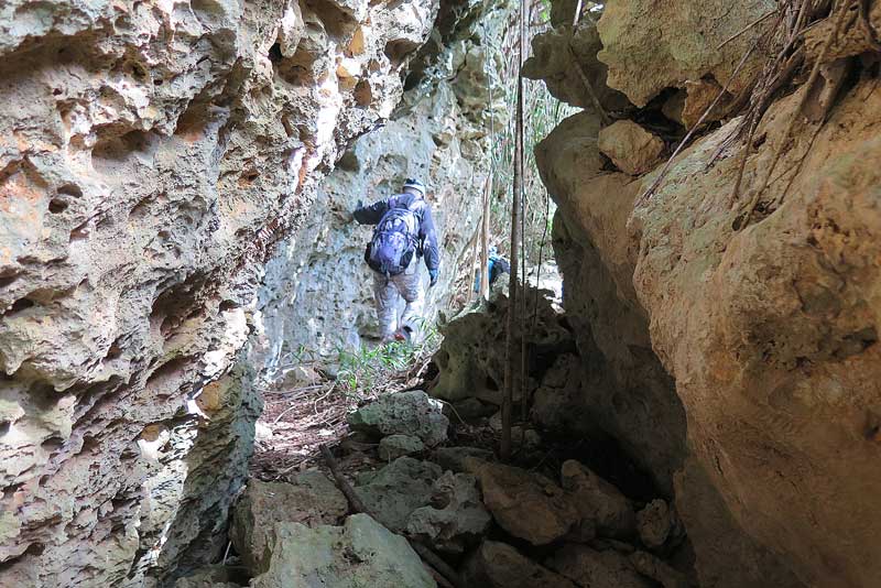 しっかり道もありますから迷う事は無いです。この辺りはトウツルモドキが繁茂しています。遺骨収集会するに際しては、アダンよりも厄介な植物かも知れませんね。
