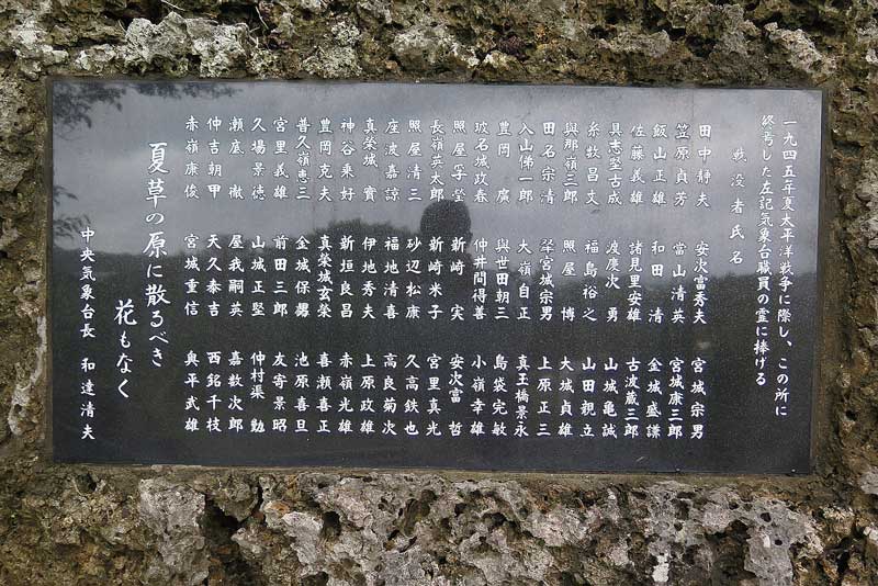 沖縄戦で戦没された沖縄気象台職員72柱の名前が刻まれていますね。