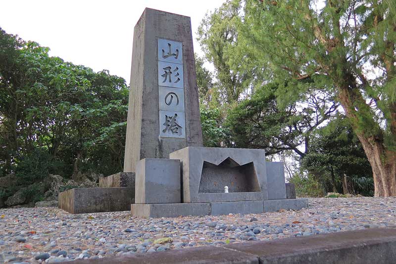 砂利道を少し歩くと右側に「山形の塔」見えてきました。