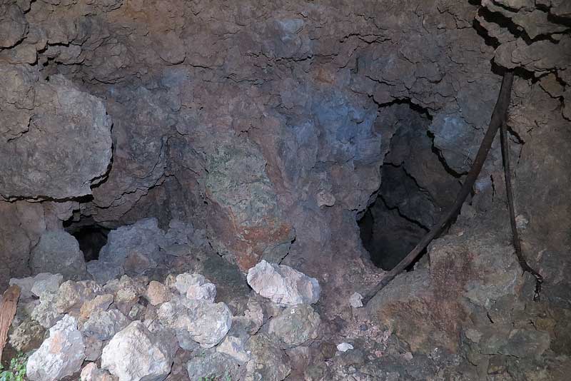 納骨室を超えて奥まで来ました。ここもご覧のように、地盤が深く掘り返されていますね。誰かが掘り返したのですね。
