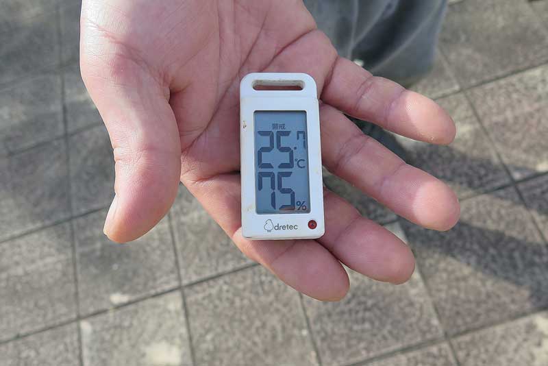 ご覧下さいませ。25度ですよ。そして湿度75%。暑いはずですよね~。